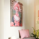 This elegant empress is printed on canvas with pink butterflies individually placed around her crown and collar. Framed in acrylic shadowbox. 30" W, 39.5" H, 3" D